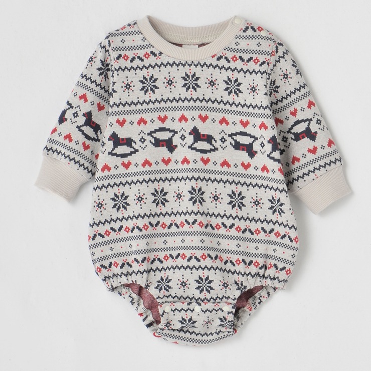 ジャガード編みのニットロンパスです。