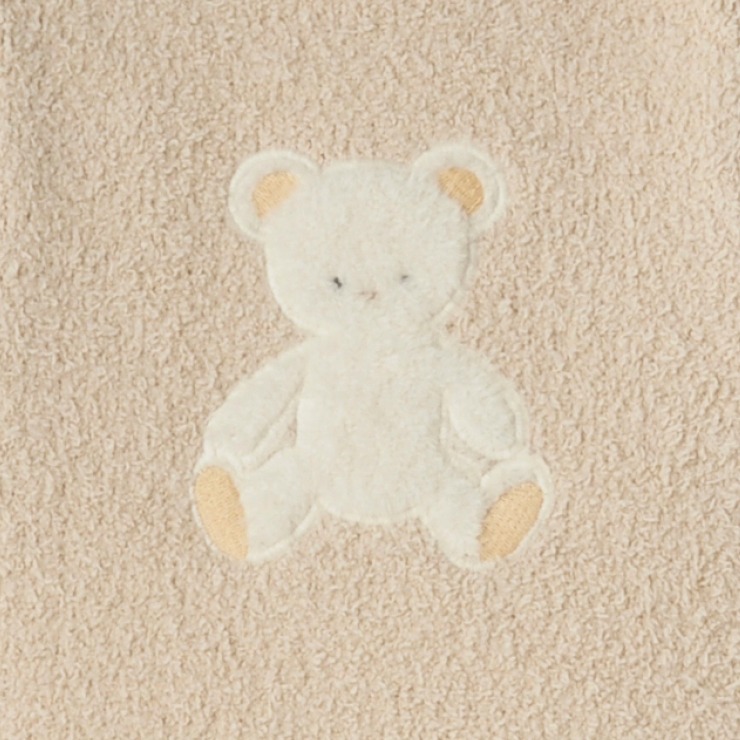 ボア素材を使用したくまさんのアップリケデザインがかわいいです。