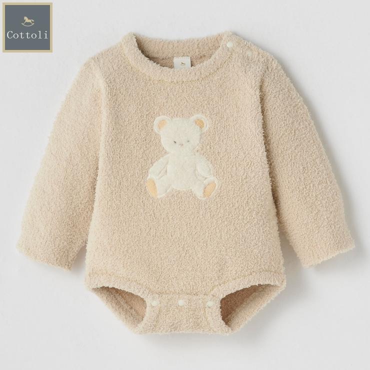 ふんわりもこもことしたパイルニット素材を使用したロンパスです。
