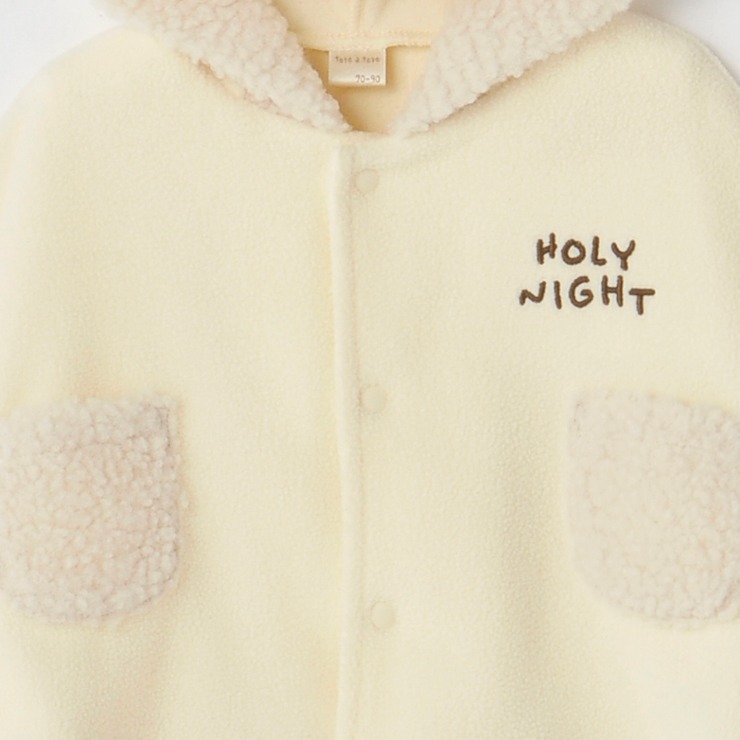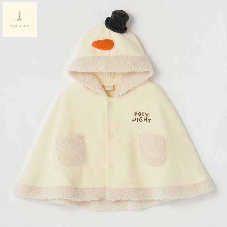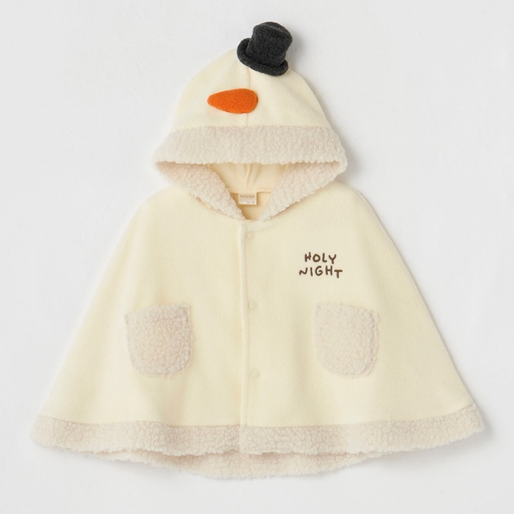 もこもことしたボアの配色に雪だるまをイメージした立体的なフードデザインがかわいいです。