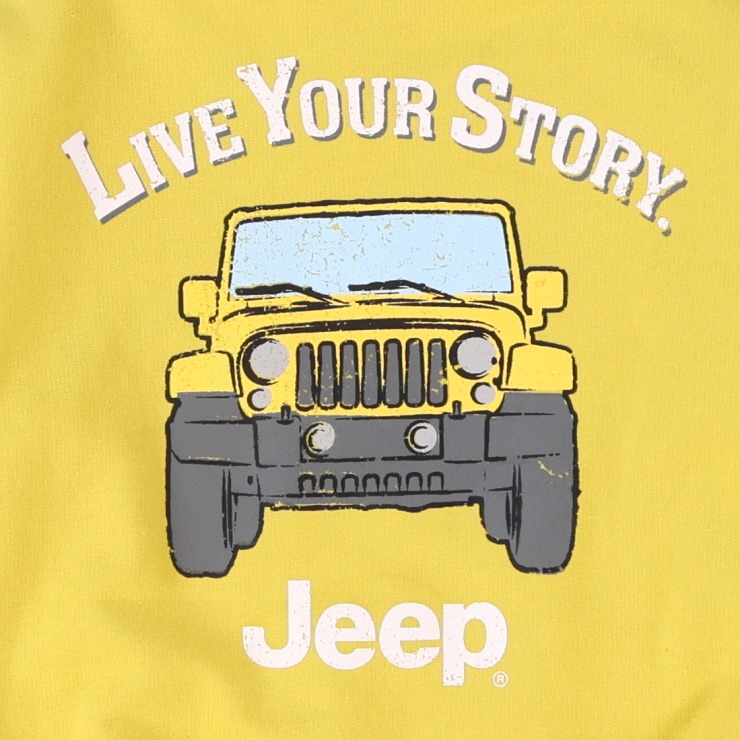 JEEPの車が印象的で、かすれラバープリントを用いることでよりヴィンテージ感を出しおしゃれに着こなせます。