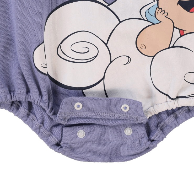 肩と股下にはスナップボタン付きで、着替えやおむつ替えもらくらくの1枚です。