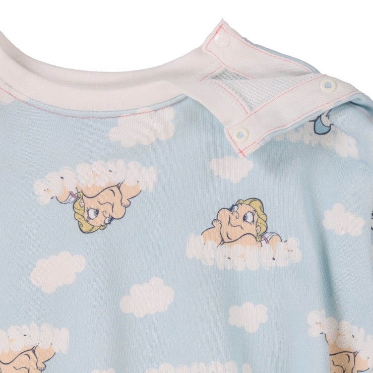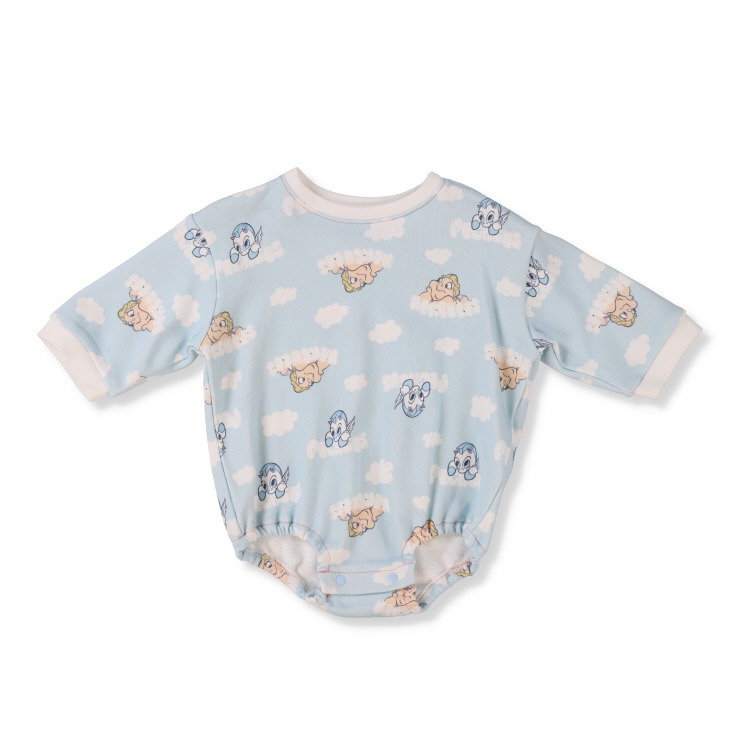 パステルブルーとホワイトの爽やかな雲柄に、赤ちゃんヘラクレスとペガサスのかわいいアートを総柄でプリントしました。