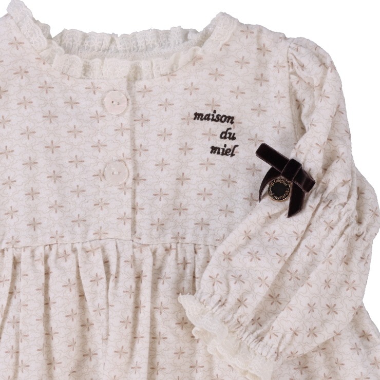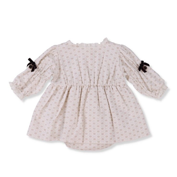シトロンバターサンドのパッケージに使われているシックな柄をプリントしたロンパースです。
