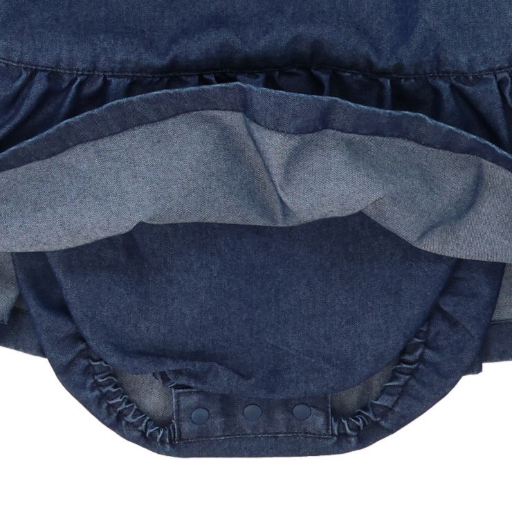 デニム素材がおしゃれでかわいい一枚♪肩のリボンやスカートのデザインが、全体をより華やかにしてくれます!