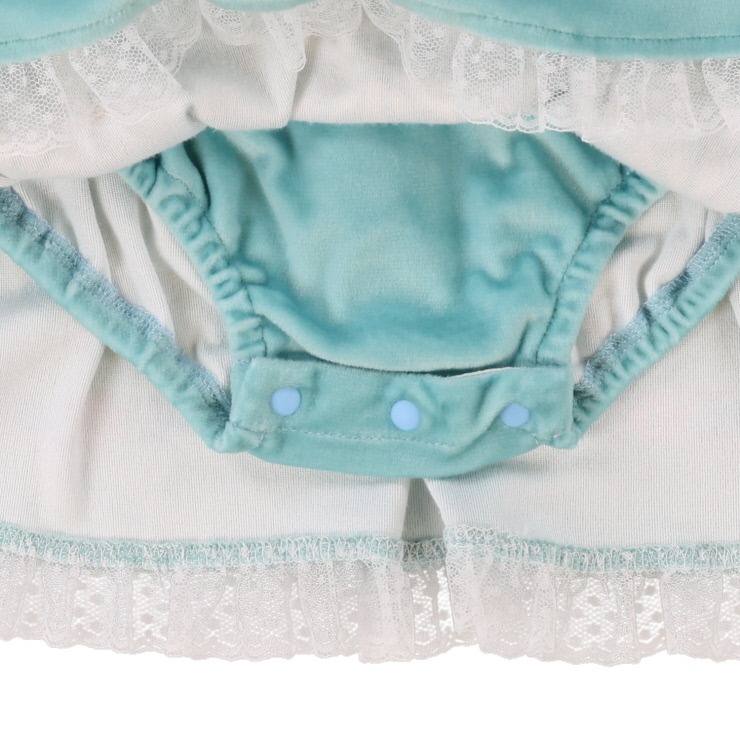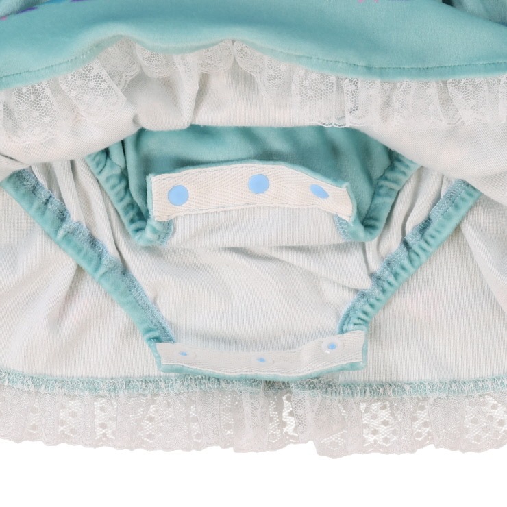 やわらかくてストレッチの効いたベロア素材のロンパースです。