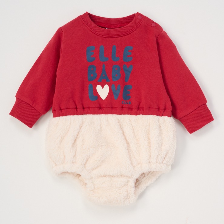 綿100%の裏毛素材のトップス部分ともこもことしたボア素材のボトムの組み合わせがかわいいです。