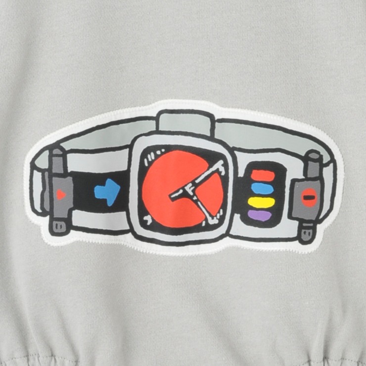 前身頃のアップリケでベルト部分が立体的に表現され、ライダーになった気分!