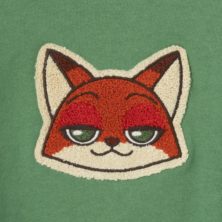 『ズートピア』の「ニック」をモチーフにしたぽこぽことしたサガラ刺しゅうがかわいいです。