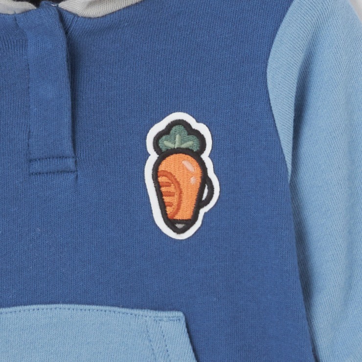 長い耳がついたフードに刺しゅうデザインがアクセントになっています。