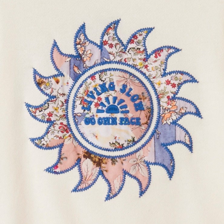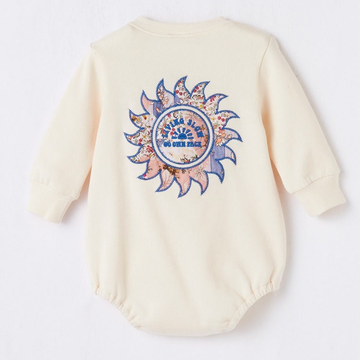 スポーティーな首元のガゼットに太陽モチーフのアップリケデザインがおしゃれです。