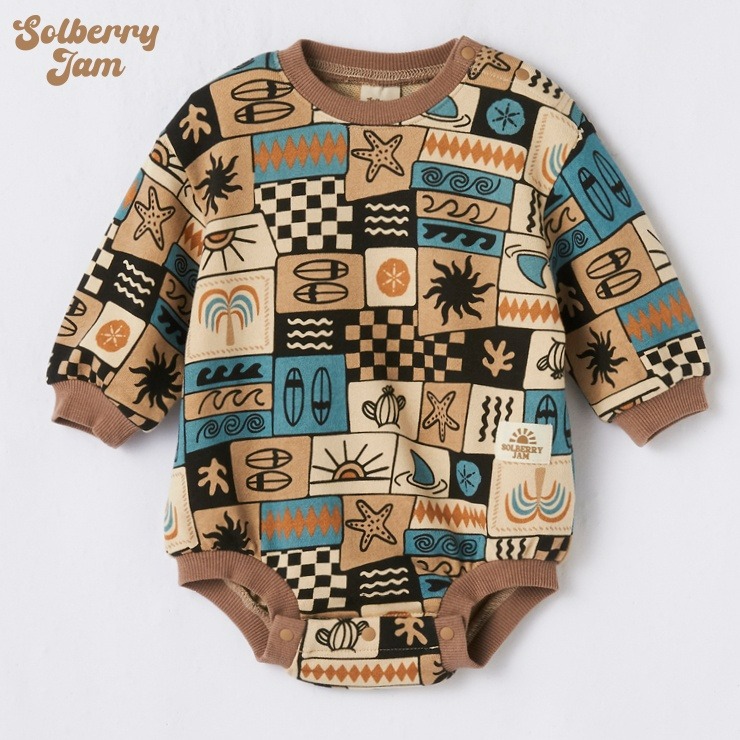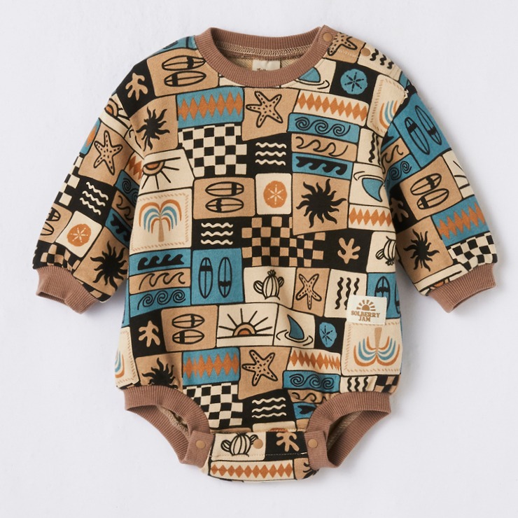 ナチュラルなブラウンカラーやサーフなモチーフを使った総柄モチーフがおしゃれです。