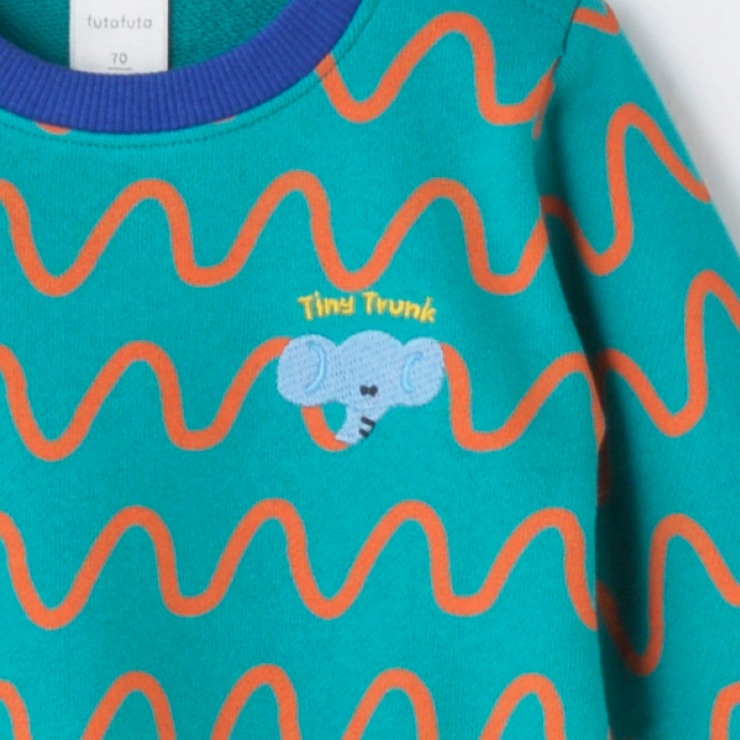 カラフルでポップな総柄デザインに刺しゅう使いがかわいいアクセントになっています。