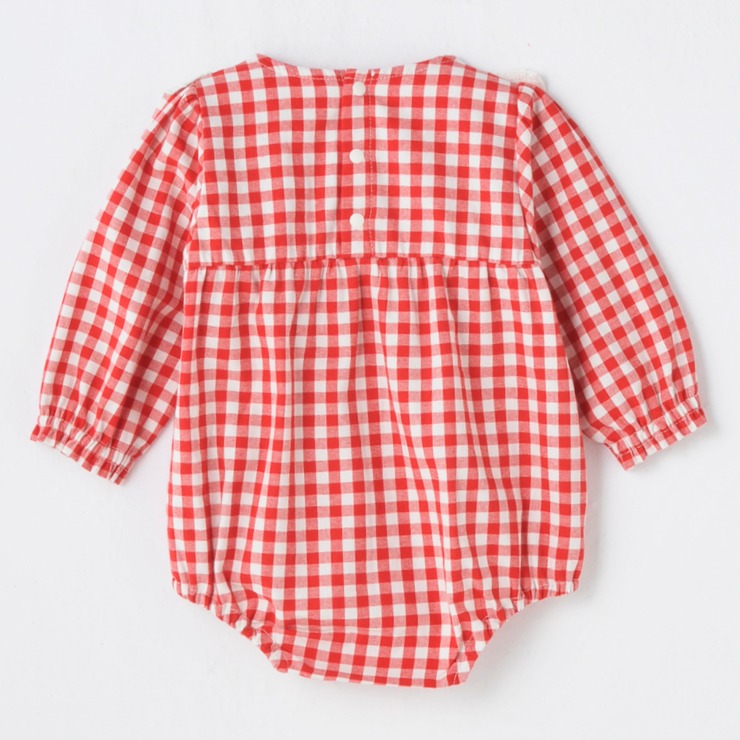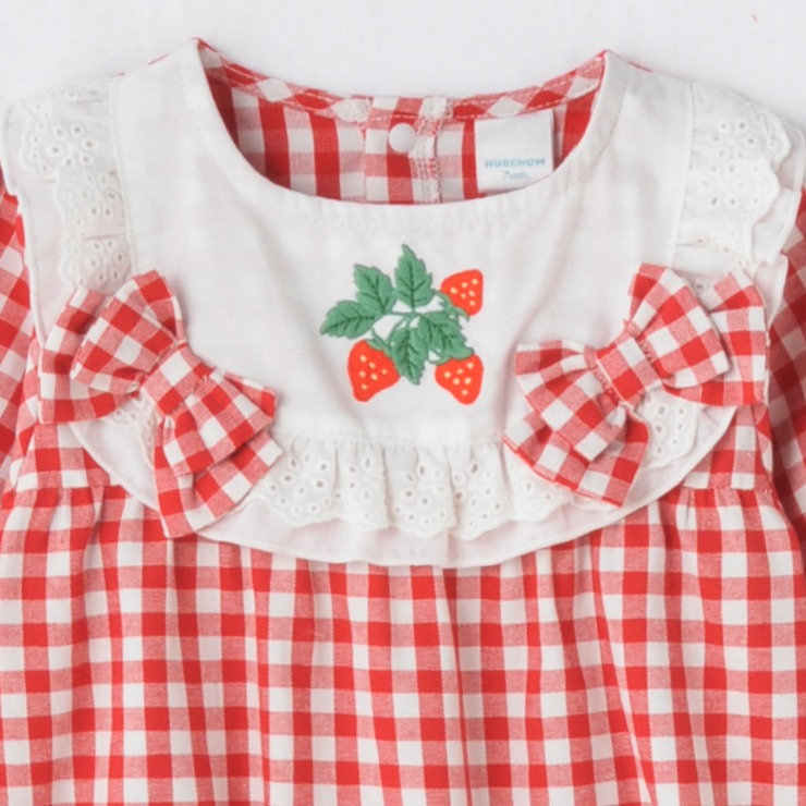 あかいギンガムチェックにいちごの刺しゅうがかわいいです。