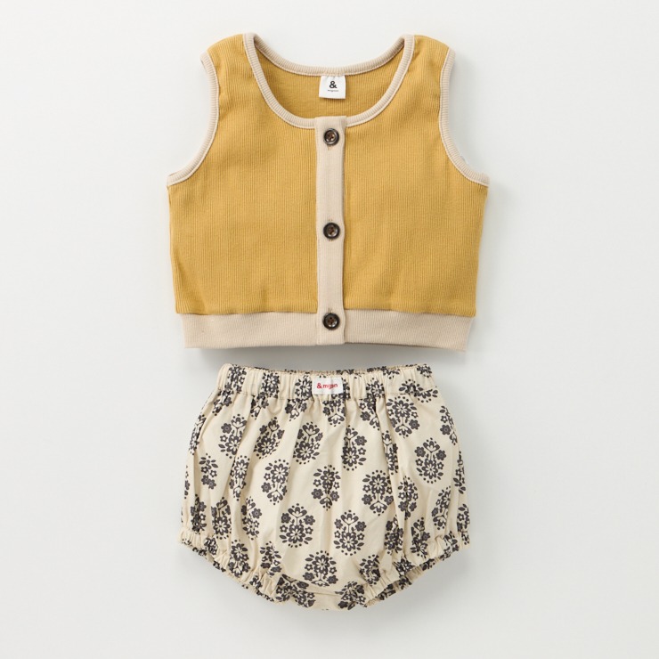 テレコ素材のノースリーブトップスとブロード素材のブルマのセットアイテムです。