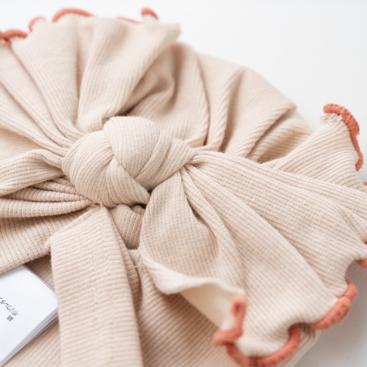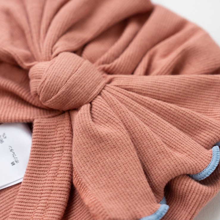 テレコ素材を使用したロンパスとターバンのセットアイテムです。