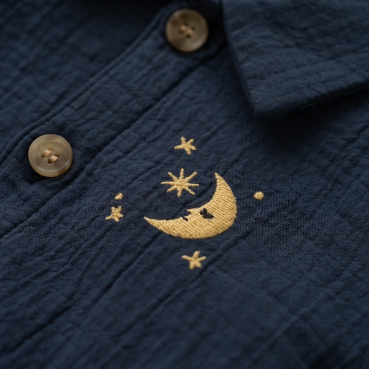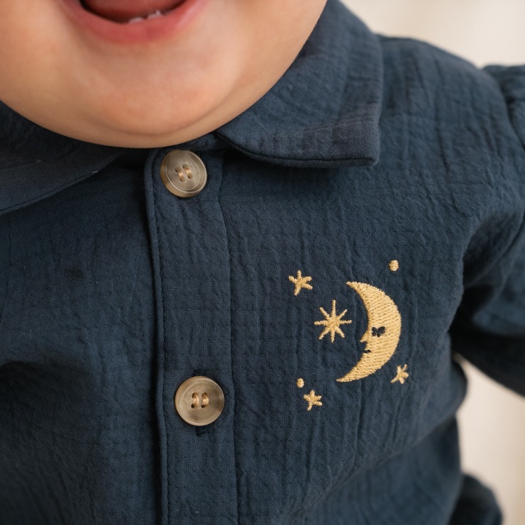 雰囲気のあるワッシャー加工のやさしい素材感に刺しゅう使いがアクセントになっています。