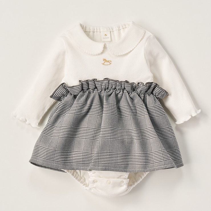 綿100%のテレコ素材とチェック柄のスカートのドッキングデザインです。