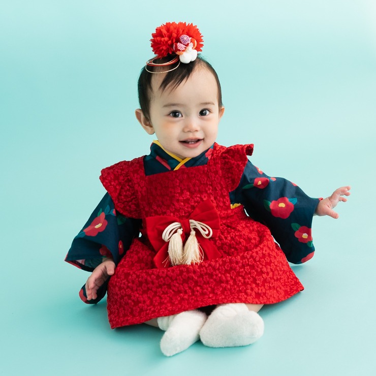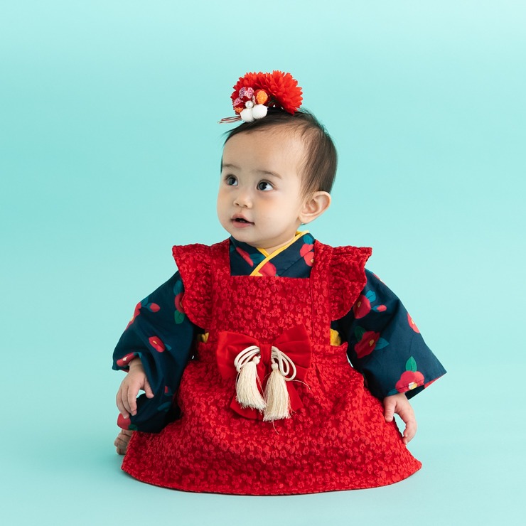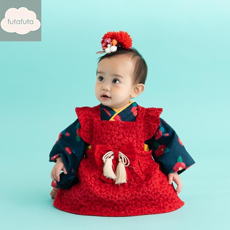ベビー エプロン付袴ロンパス(70・80cm・futafuta)