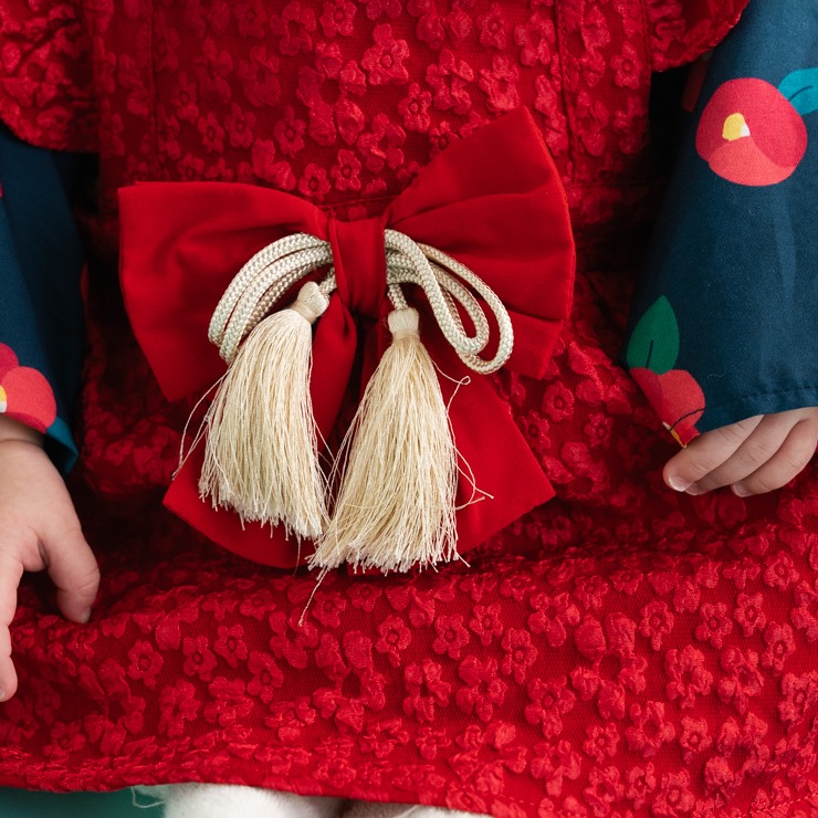 つばきの総柄とレース素材のおしゃれな組み合わせになっています。
