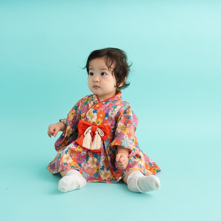 ベビー エプロン付袴ロンパス(70・80cm・futafuta)