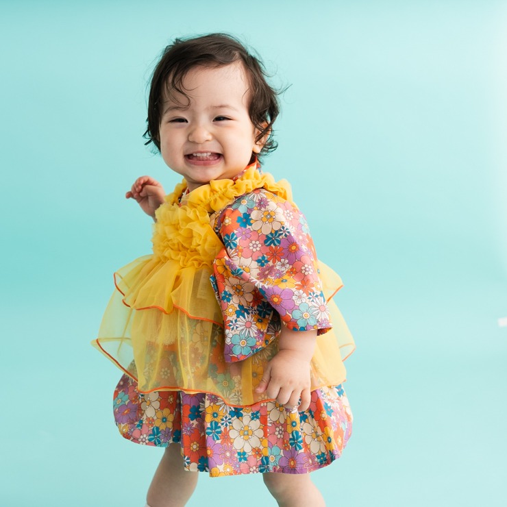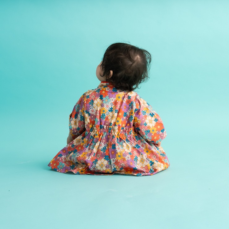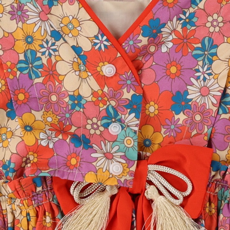 綿100%のブロード素材を使用した鮮やかな総柄プリントがかわいいです。