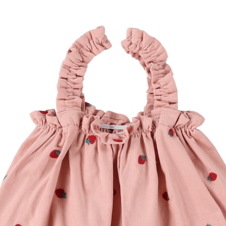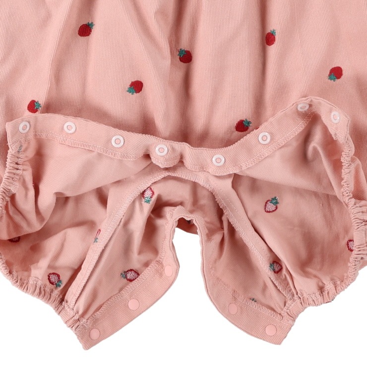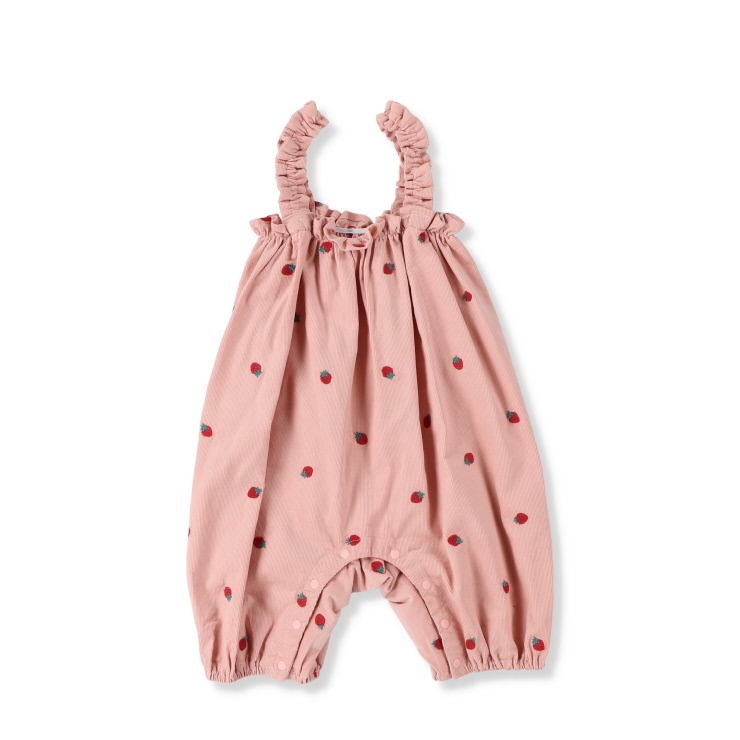 キュートないちご刺しゅうがポイントのコーデュロイベビーサロペット。ぬくもりを感じる素材でお子様を優しく包みます。ふっくらとしたシルエットが愛らしく、普段使いはもちろん、お散歩などのお出かけにもぴったりのアイテムです。