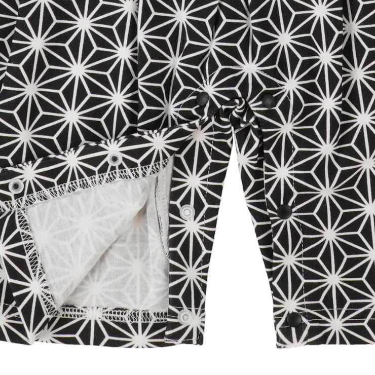 胸の合わせ部分と股下はスナップボタンで開閉できるので