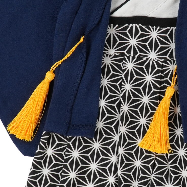 梅の紋の羽織と麻の葉模様のはかまが力強く華やかな一着です。