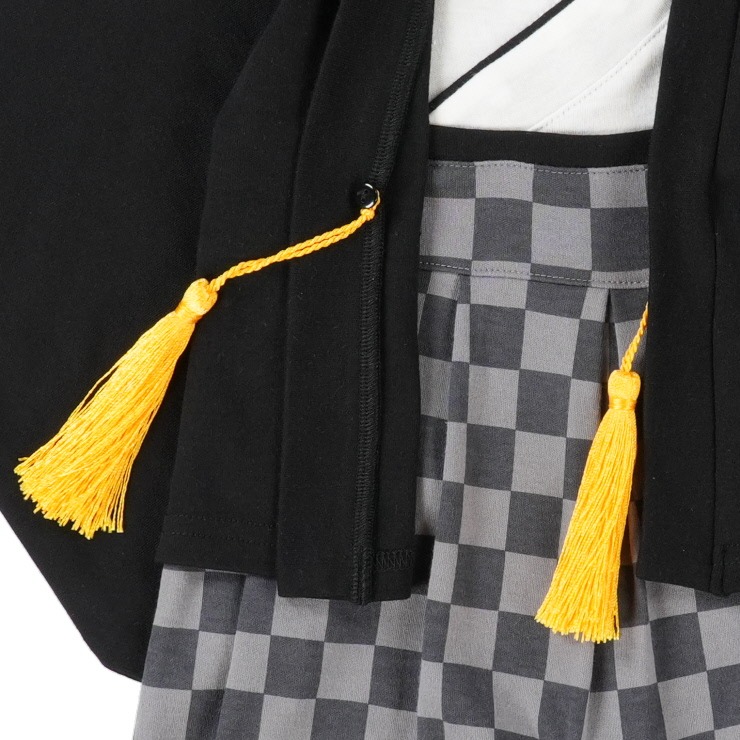 桜の紋の羽織と市松模様のはかまが華やかで安定感のある一着です。