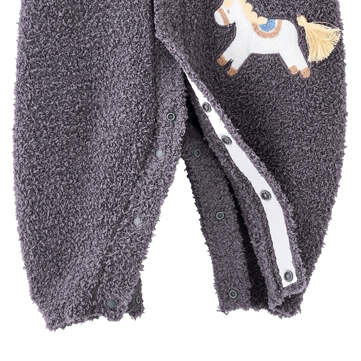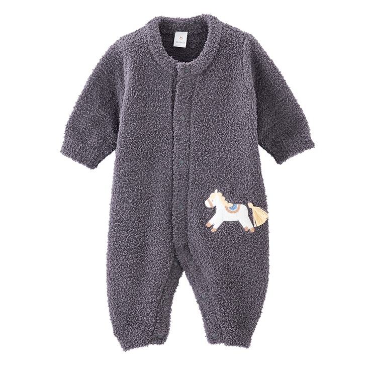 ふんわりもこもことしたパイルニット素材を使用したカバーオールです。