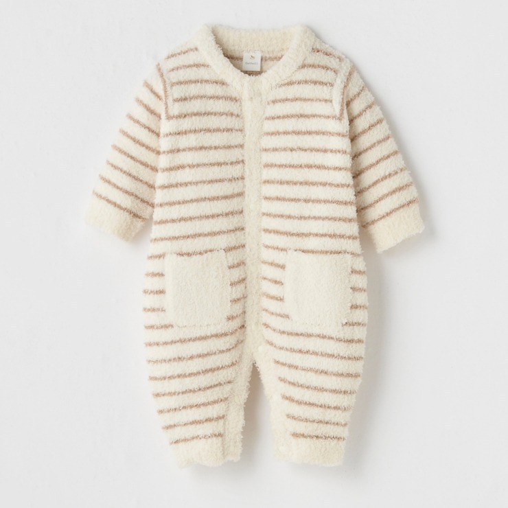 ふんわりもこもことしたパイルニット素材を使用したカバーオールです。