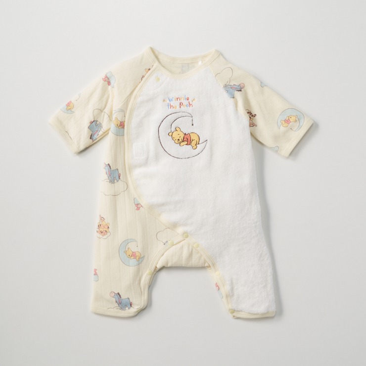 前を大きく開けられるスナップ仕様で、着脱やおむつ替えも快適に行えます。