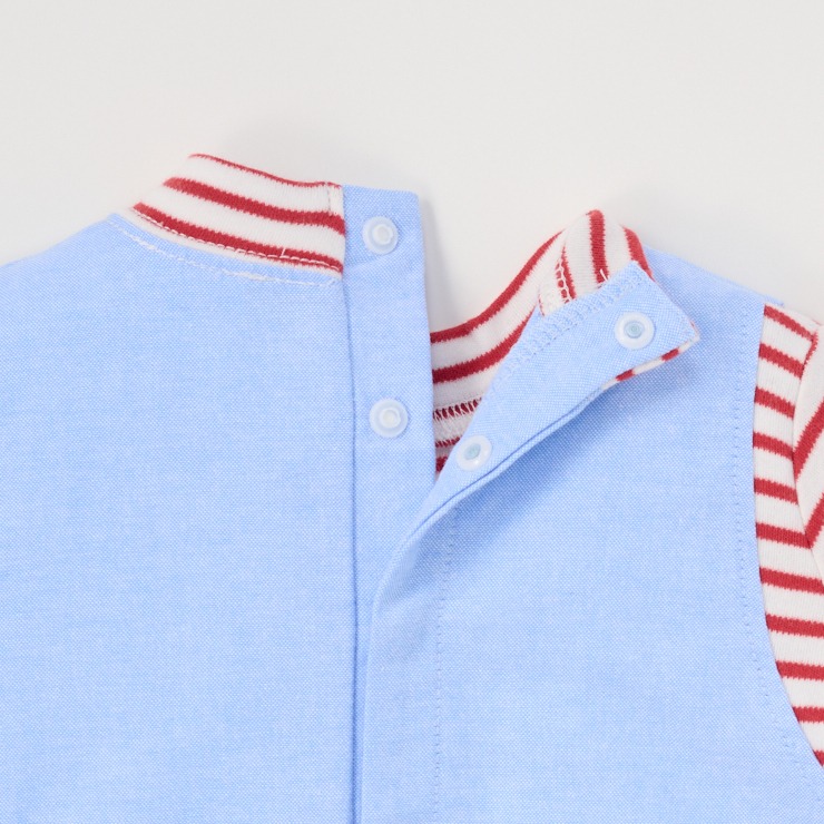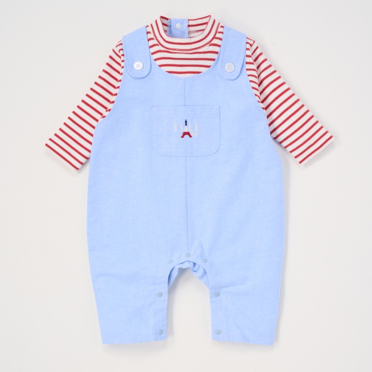 重ね着しているようなフェイクレイヤードデザインのカバーオールです。