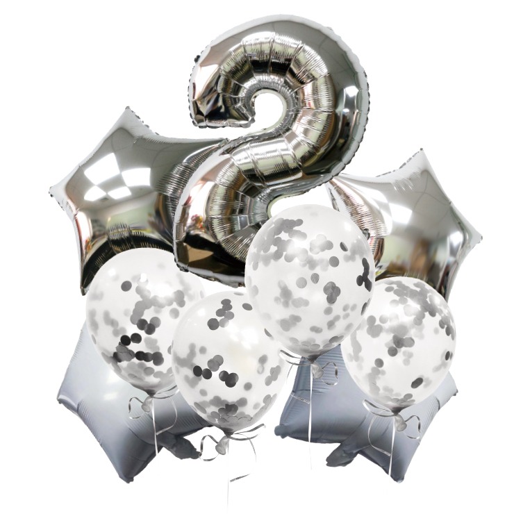 シルバーの数字と星などが組み合わさったバルーンです!