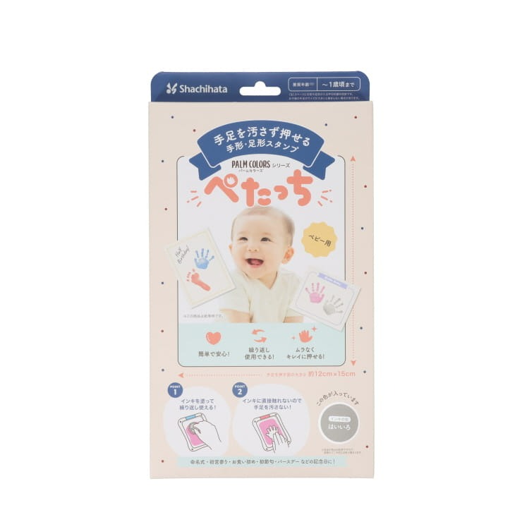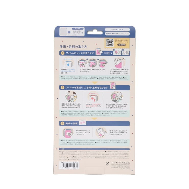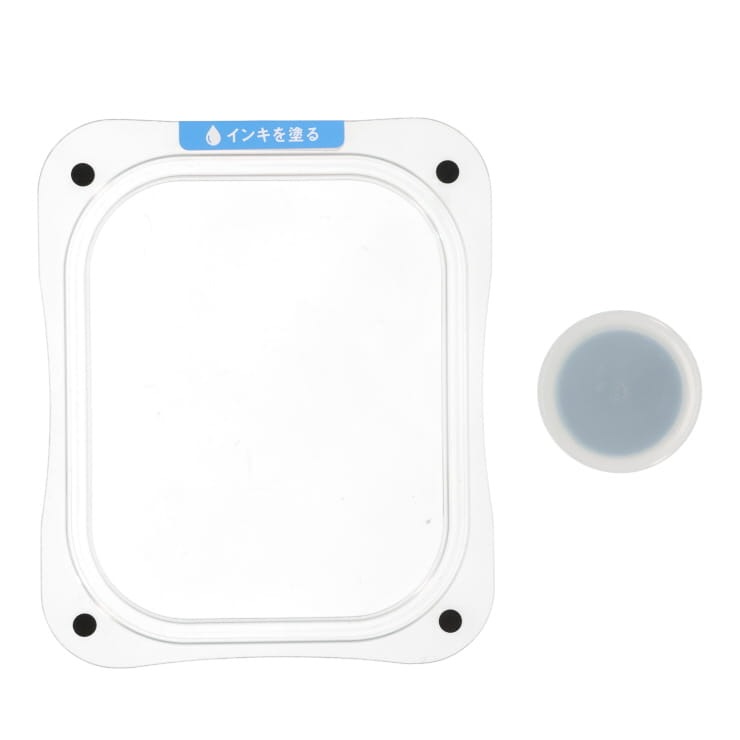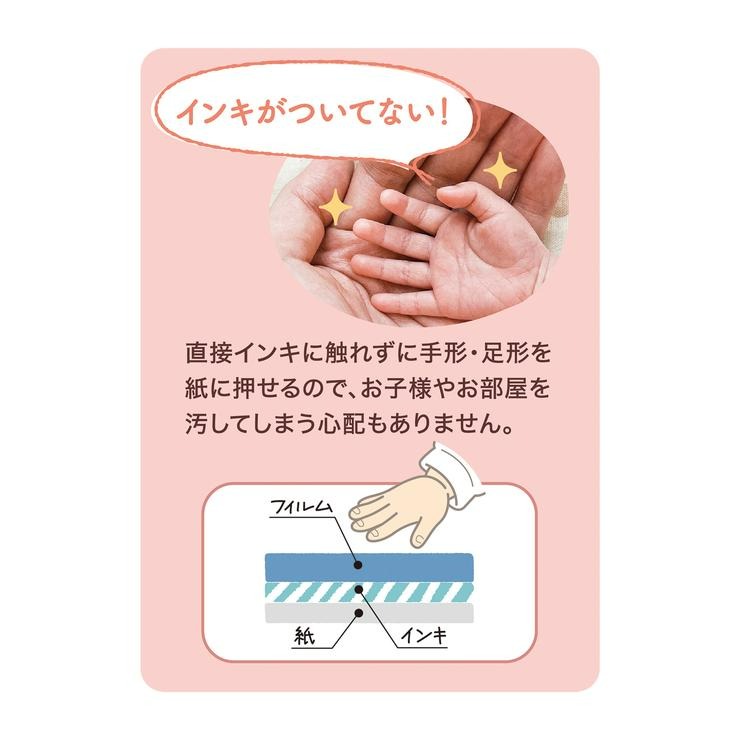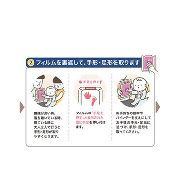 インキを塗布したフィルムの反対面から手足を押し付けて、手形・足形を紙に押すことができるスタンプです。