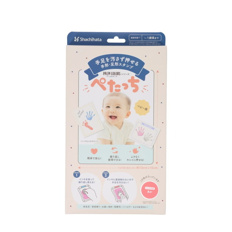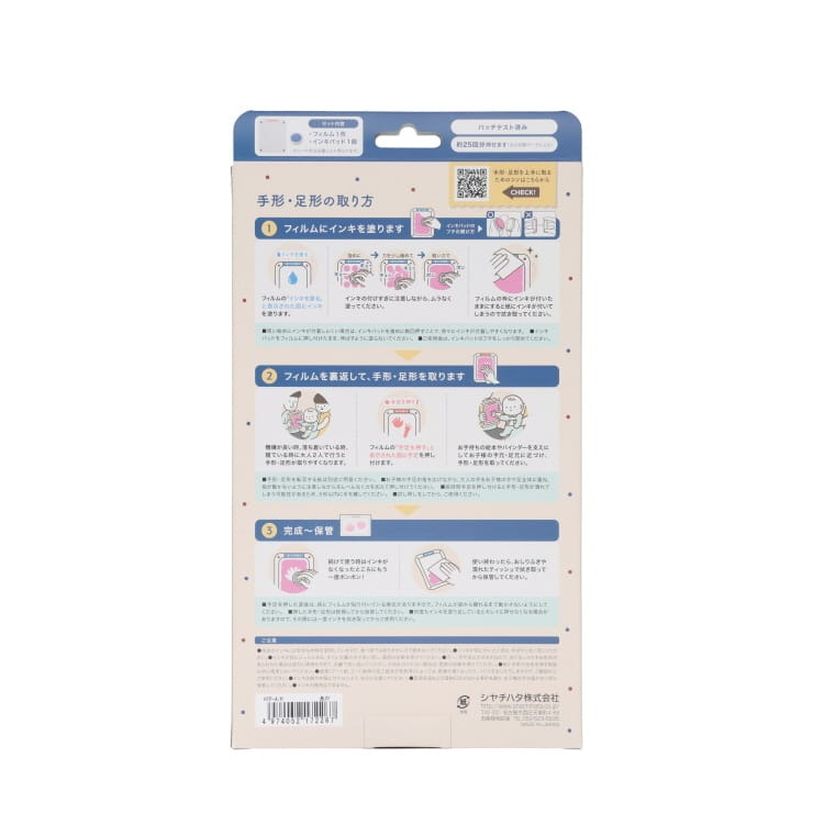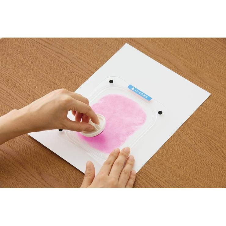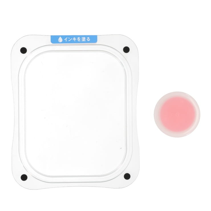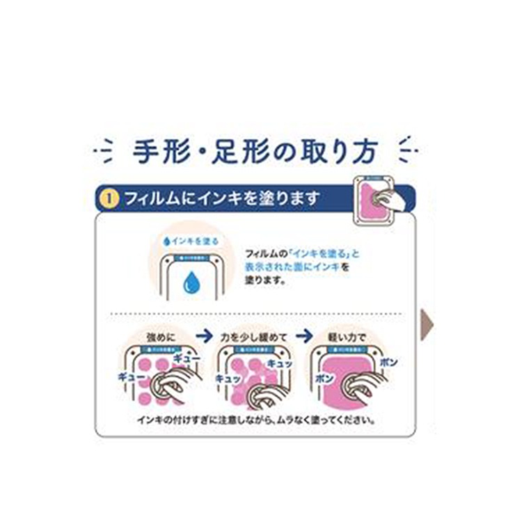 インキを塗布したフィルムの反対面から手足を押し付けて、手形・足形を紙に押すことができるスタンプです。