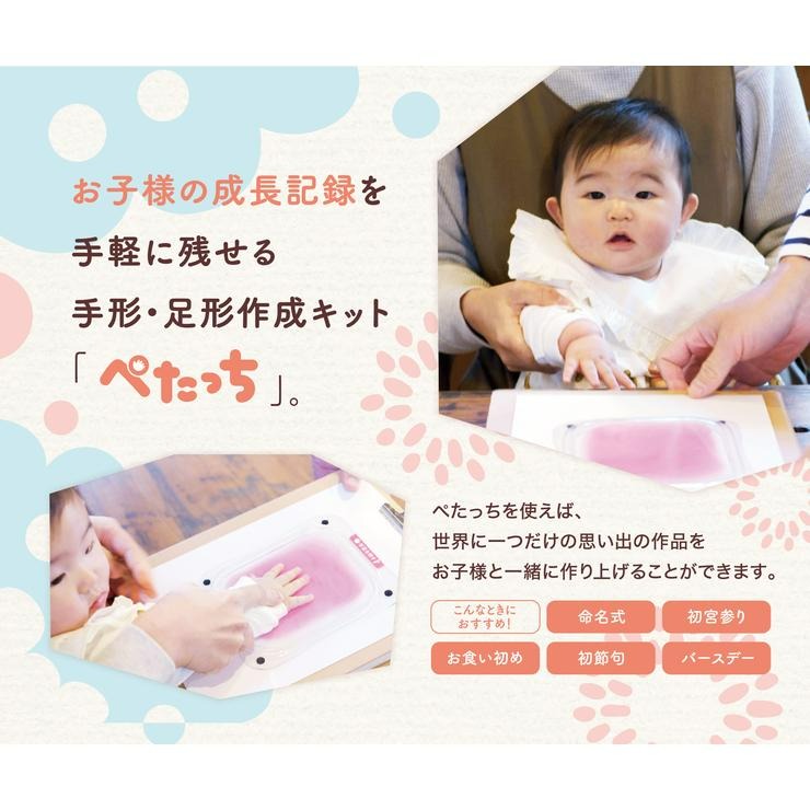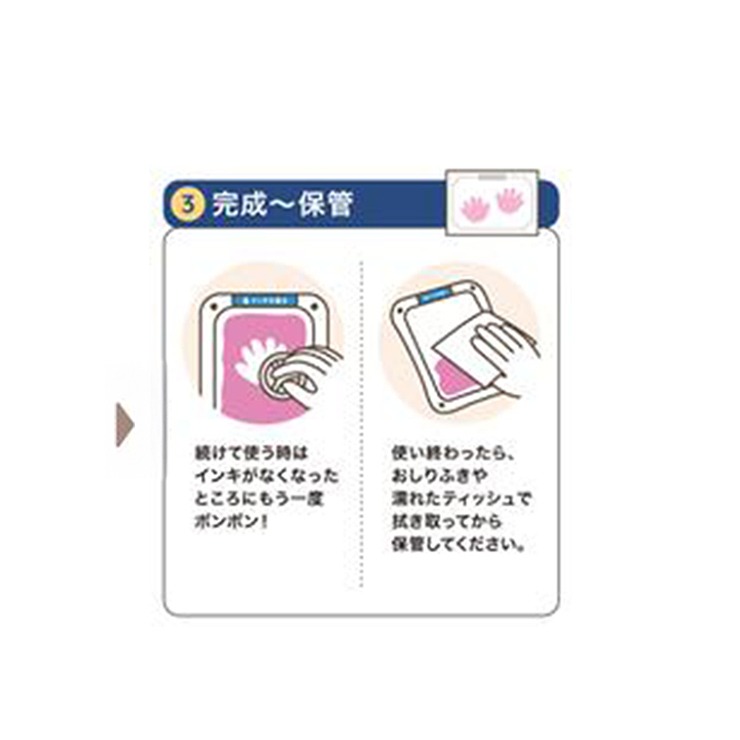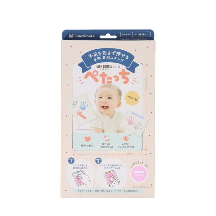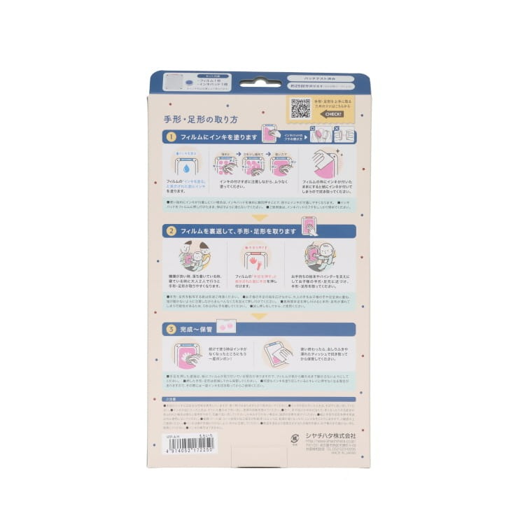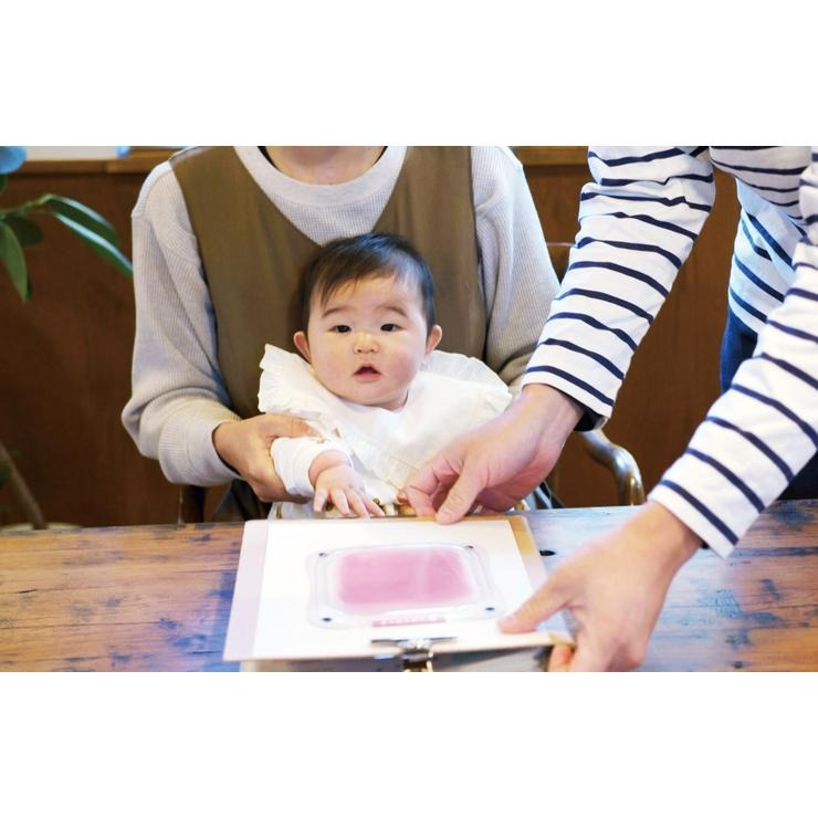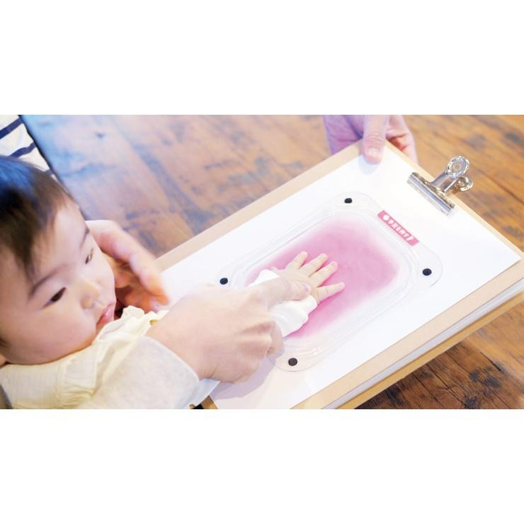 インキを塗布したフィルムの反対面から手足を押し付けて、手形・足形を紙に押すことができるスタンプです。