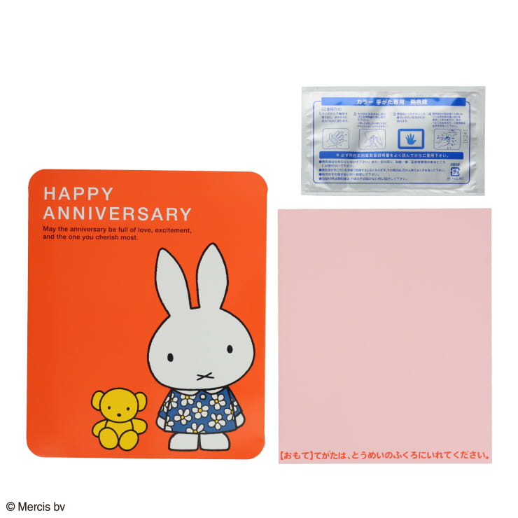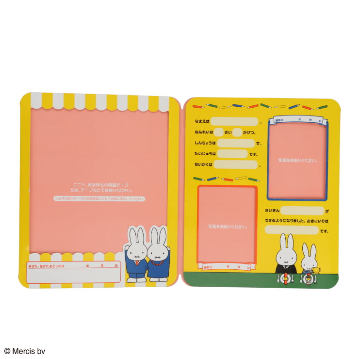 手を汚さずカラーの手がたがとれます。手がた、写真、成長記録を残せます。お誕生日や記念日の記録にもおすすめ。ミッフィーの絵本のストーリーを題材にしたデザインです。