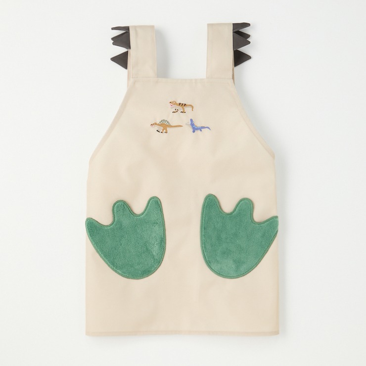 大人気のティラノサウルス・スピノサウルス・モササウルスの刺繍が胸元に!(^^) 肩ひも部分のトゲトゲや、ポケット部分がタオル生地で足形になっている事もかわいい( ^)o(^ ) 本体には防汚加工を施してお手入れも楽ちんです!!