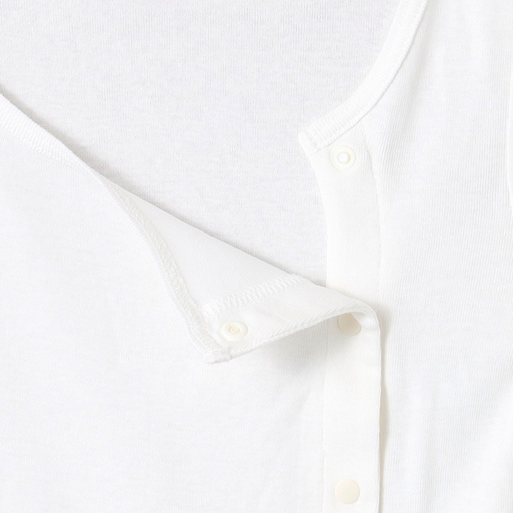 お着替えがしやすいようにスナップボタン式の前開き仕様になっています。