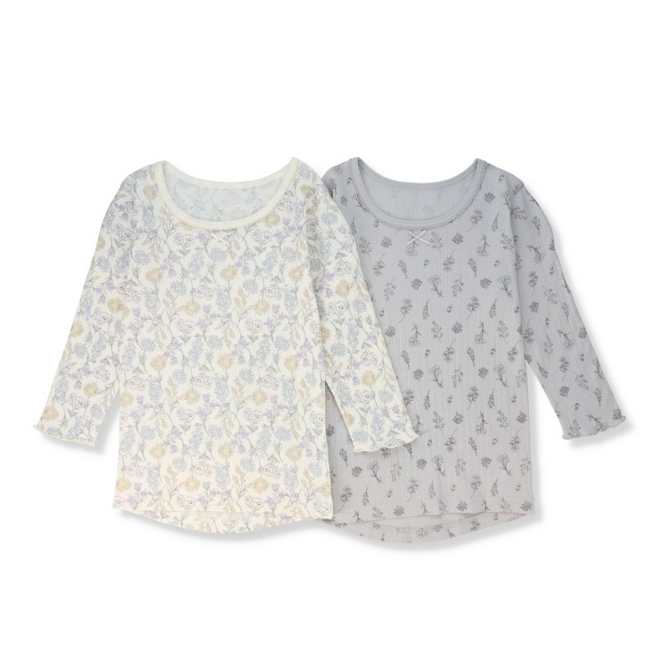 オフ地のボタニカル柄とグレー地の花柄がおしゃれな2枚組の長袖シャツです!
