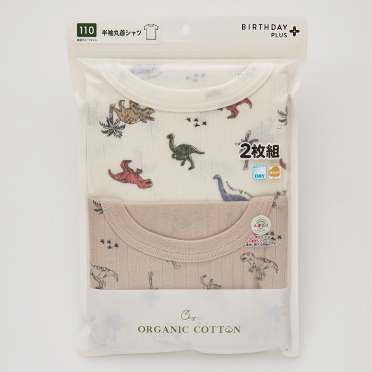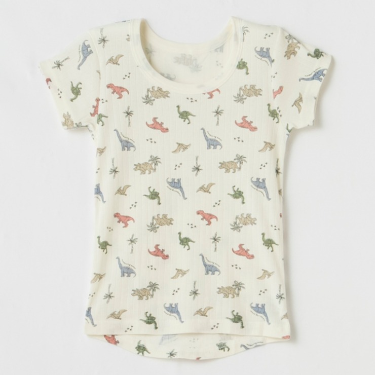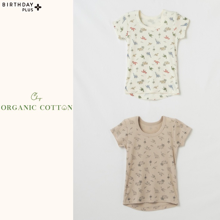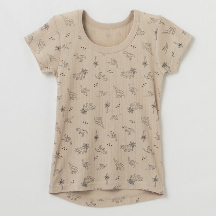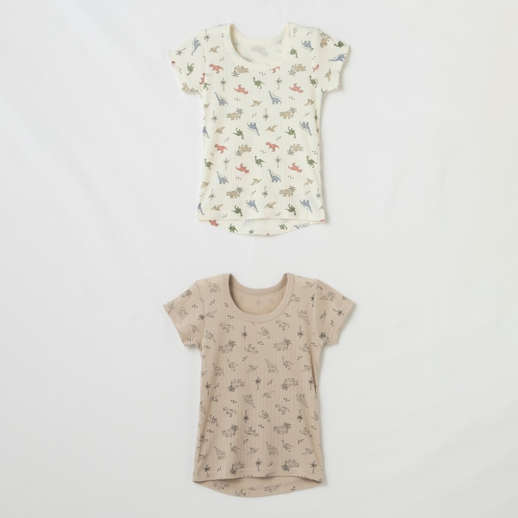オフ地とベージュ地の恐竜柄がかっこいい2枚組の半袖シャツです!