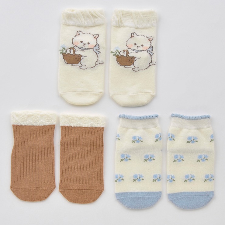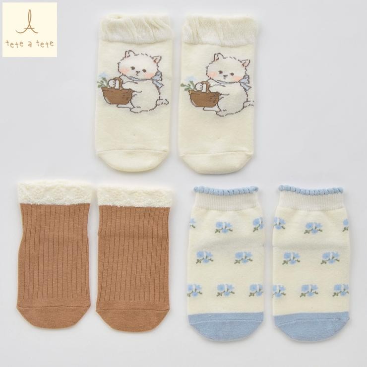 キッズ 3足組ショートクルーソックス(15~20cm tete a tete)