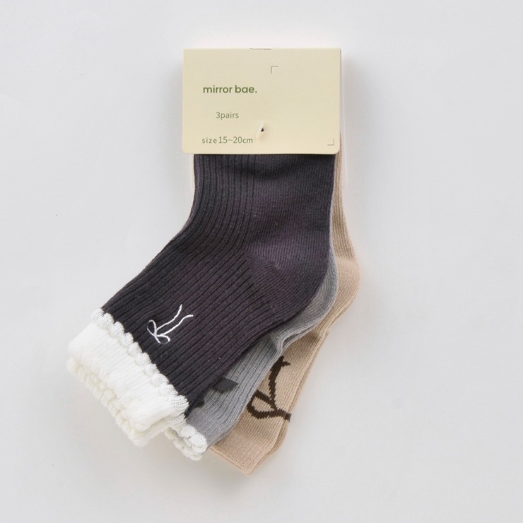 キッズ 3足組クルーソックス(15~20cm mirror bae)