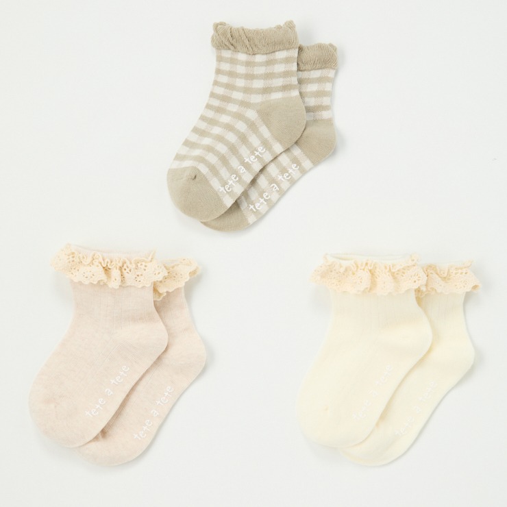 キッズ 3足組ショートクルーソックス(15~20cm tete a tete)