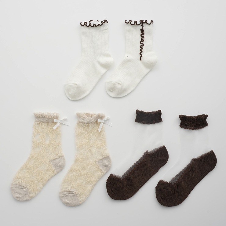 キッズ 3足組クルーソックス(15~20cm mirror bae.)