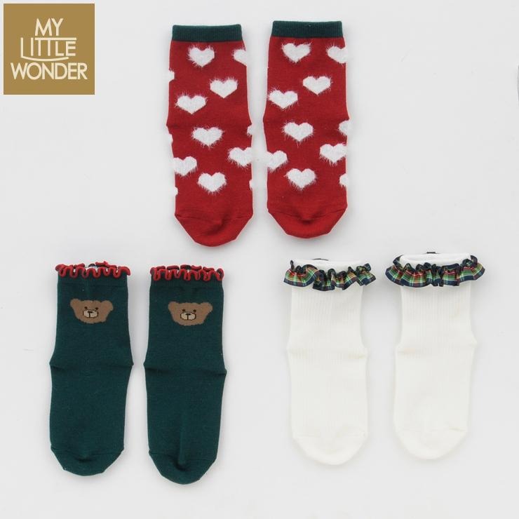 キッズ 3足組クルーソックス(15~20cm MY LITTLE WONDER)