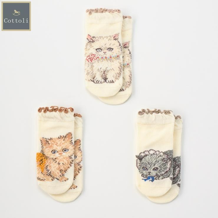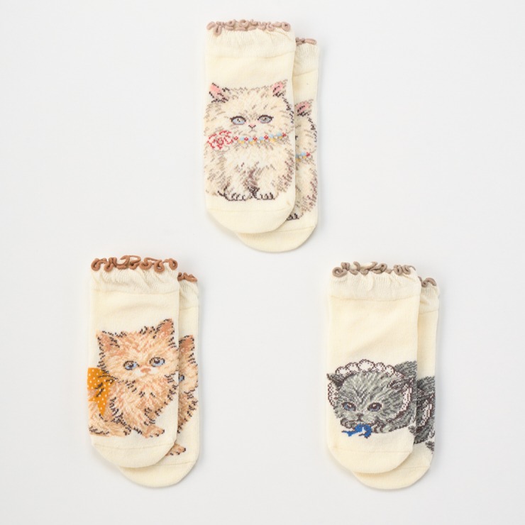 繊細でノスタルジック、どこかファンタジックなyukiemonのイラストの世界を、”こねこ図鑑”柄で表現したソックスです。