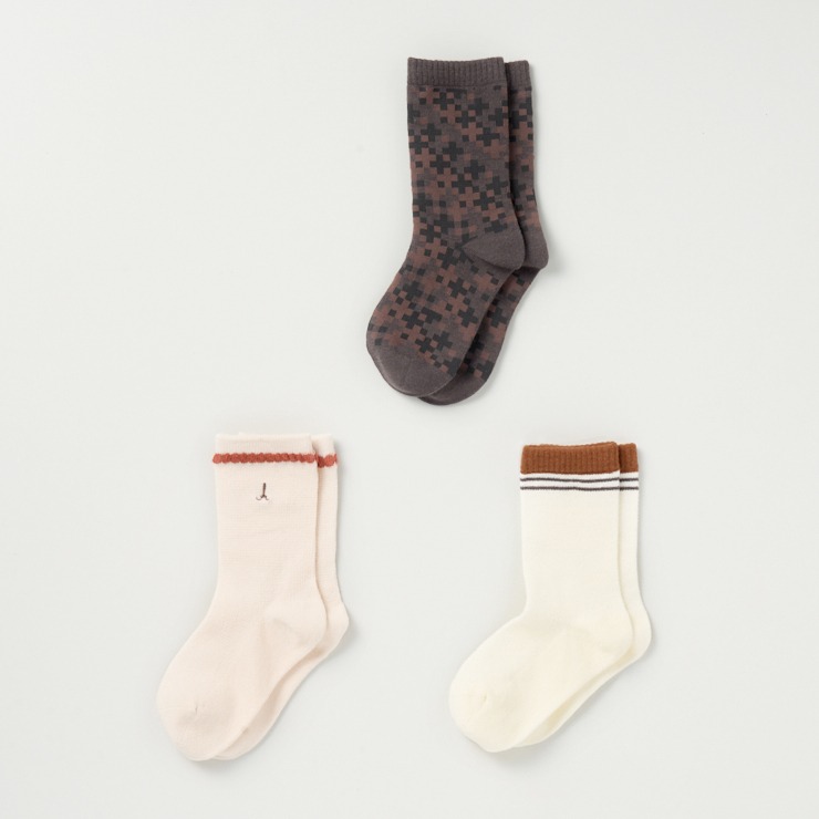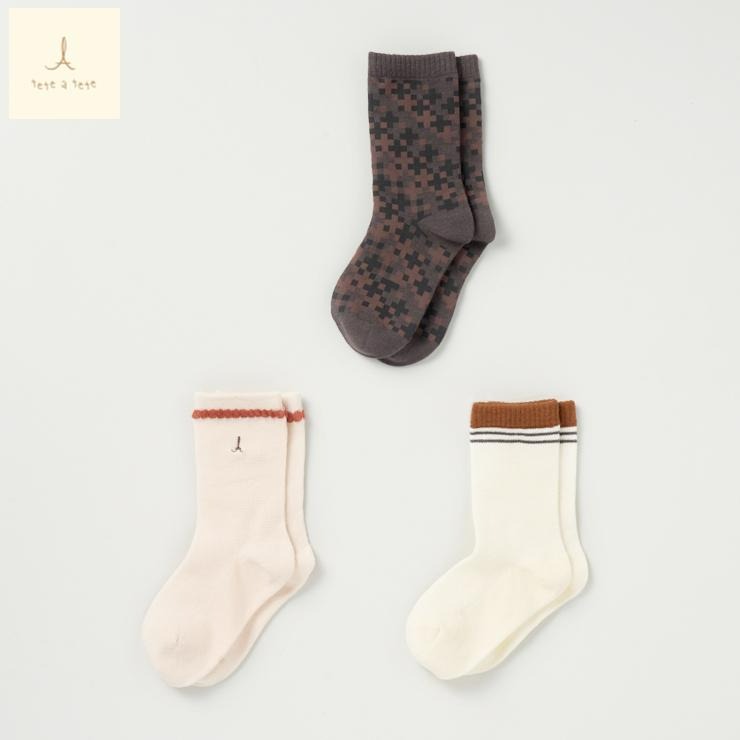キッズ 3足組クルーソックス(15~20cm tete a tete)